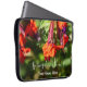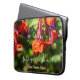 Protect your tech with a touch of Southern charm. This form-fitting laptop sleeve captivating high-detail photograph of vibrant red and purple flowers, complete with a warm "Spring is in the Air" greeting, capturing a peaceful moment from the Heritage Garden Series.