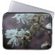 Foto com um galho com pétalas de flores brancas e primavera no primeiro plano. O fundo é um mar de cor-de-rosa, já que a árvore é uma ameixa florescente coberta por flores rosa. Fotografia Copyright ©2022 Kimberly J Tilley. zazzle.com/store/developingnature