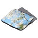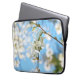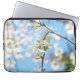 Um galho com uma flor branca de Magnolia completamente florida. Um galho promissor que fica por cima dele. E um fundo de muitas ramificações florescentes contra um céu azul. Fotografia Copyright ©2022 Kimberly J Tilley. zazzle.com/store/developingnature