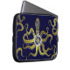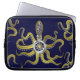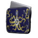 Este monstro de mar tentacled do steampunk tem oito fio-como anexos do ouro, uma engrenagem de prata central e a abundância das engrenagens e dos parafusos que compo seus cabeça, olhos e copos da sucção. É um polvo do robô/kraken, um monstro da máquina do metal para qualquer um que gosta de criaturas geeky da ficção científica/fantasia. Nesta bolsa de laptop, os tentáculos igualmente alcançam dentro dos cantos. A cor azul do fundo é customizável.