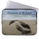 Sonhando com a praia? A foto da paisagem mostrada nesta bolsa de laptop captura as ondas intermitentes, a bela areia marrom, e um pedaço de madeira derivada. Um céu azul brilhante aparece no horizonte.