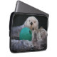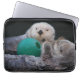 Proteja o seu laptop de computador com esta manga perfurada que apresenta a imagem fotográfica de um par de cartas agudas que brincam com um brinquedo de bola. O dorso da manga é preto. Selecione o tamanho da bolsa de laptop. NOTA: a imagem é impressa apenas num lado da capa.