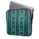 Esta manga elegante para laptops apresenta um design tribal preto e teal.