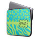 Você vai adorar esta bolsa de laptop divertida e moderna. As listras de zebra coloridas e as peles de chita para design gráfico são uma das tendências mais quentes de arte e design, e são extremamente populares de moda a decoração doméstica. Esta sofisticada coleção de zebra azul-lacrimogênea e impressão de chita e verde limão é uma das várias combinações de cores disponíveis. Um emblema de verde limão cria uma área de personalização. Isso é totalmente personalizável para personalizar e incluir seu nome, iniciais de monograma, nome comercial ou outras palavras para transmitir sua mensagem. Vai à loucura com estas designs de pele selvagem!