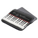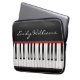 Chaves pretas e brancas de piano com forma vermelha. O texto é editável.