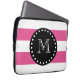 Um teste padrão simples, moderno, quente do rosa e o branco das listras com sua inicial em uma pia batismal moderna, em uma etiqueta preta do círculo, bandeira, quadro com uma linha beira branca pontilhada. Cores na moda de GraphicsByMimi©, modificação, listras corajosas ou linhas teste padrão que você pode personalizar com seu monograma para ela. Use o campo do modelo para adicionar sua inicial do monograma ou rotular ou selecionar "personalizam-na" para mais opções de edição como a adição de seu nome, texto ou a foto para fazer seus próprios, original, personalizado, um--um-amável projeta. Outro colore disponível.