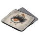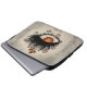 Bolsa de laptop personalizada esquisita com uma ilustração digital de um olho feminino com íris quebrada feita de lava e pestanas compridas terminando em flores bizarras com pétalas aneladas em um céu de cinza nublado. Esta bolsa de laptop legal com uma sensação psíquica, gótica tem um nome personalizável.