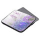 Esta luva do computador é decorada com um design roxo e azul abstrato laçado delicado da flor dos roxos, dos azuis e dos verdes. Personalize o campo do modelo com sua informação, remova todo o texto ou o clique personaliza o botão para selecionar um estilo de pia batismal, tamanho, e colore-o prefere.