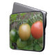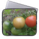 Este saco de laptop espetacular mostra uma fotografia de um monte de tomate que amadurece, incluindo um tomate vermelho, laranja e verde de cereja numa linha, crescendo numa fábrica de tomate num jardim suburbano. A fotografia foi tirada usando macro fotografia para um resultado detalhado.