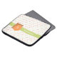Uma bolsa de laptop de padrão de linha pontilhada com faixas vermelhas, marrons e verdes neutras contra um fundo branco, envolta com um quadrado de modelo geométrico e design de círculo. Personalize adicionando seu nome e suas iniciais. Moda perfeita para a mulher moderna e na moda.