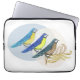 Três pássaros de diferentes esquemas de cores com uma ramificação de árvore em um estilo simples de vassoura.