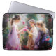 Uma pintura gerada por IA de três meninas brincando num jardim floral