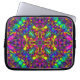 A bolsa de laptop que caracteriza um roxo funky, uma turquesa e um teste padrão amarelo da mandala. Esta mandala impressionante da arte do fractal foi criada de uma fotografia. O teste padrão da mandala é um auxílio da meditação, olhar dentro e considera as cores, os padrões e os símbolos e envia sua mente dentro a um estado relaxed profundo.