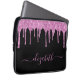 Bolsa de laptop branca personalizada, elegante e escura escura com gotas de brilho sujo rosa quente. Personalize com seu nome em um script cor-de-rosa de tendência de na moda com alternâncias.