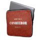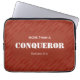BOLSA DE LAPTOP CRISTÃ motivacional na moda com o lembrete de que o amor dos Cristos para nós nos faz mais do que conquistadores. O design mostra um fundo BRICK RED com 'CONQUEROR' em um padrão de tiled. O texto principal diz MAIS DO QUE UM CONQUEROR, que se baseia nos romanos 8:37. Um excelente presente para aniversários e Natal. Especialmente adequado para Dia de os pais ou como presente para encorajar e abençoar uma pessoa especial. O texto em primeiro plano é PERSONALIZÁVEL, portanto, você altera o texto ou a referência de script pode ser substituída por um nome, se desejar. Parte da Coleção de DIAS DE OS PAIS em Designs Bereanos.