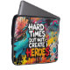 Vibrant gradient typography with the phrase "HARD TIMES DO NOT CREATE HEROES". Bold, playful design for tees and hoodies; eye-catching, conversation-starting appeal.