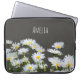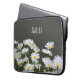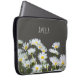 Bolsas de laptop modernas e na moda personalizadas com margaridas ensolaradas sobre fundo de cinzas escuras.