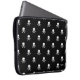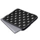 Bolsa de laptop preta com um crânio branco e um padrão de bósforos. Você pode alterar a cor de fundo, o tamanho e o ângulo do padrão. Nosso logotipo está no canto - mova-o ou remova-o se quiser.