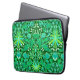 Neoprene manga em uma vintagem do padrão de ícones, tulipas e folhas de William Morris, em tons de esmeralda e jade verde, acentuados com aqua e branco, em um fundo verde florestal profundo