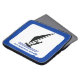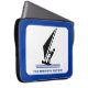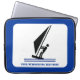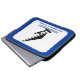 O surfista na bolsa de laptop de windsurf conselho preta, azul, que mostra um ícone de pictograma minimalista de um surfista de silhueta preta e seu texto sobre fundo branco com borda azul. Personalize-o e altere o texto com monograma, nome ou mensagem.