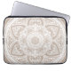 Esta mandala branca senta-se sobre um fundo castanho-claro ou castanho-claro. A cor é macia e natural. Em algumas luzes pode parecer uma cinza quente. Parte da Coleção Bardh Mandala.