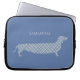 Bolsa de laptop personalizada para amantes ou amantes de cachorros de salsicha de qualquer na moda e meio esquisita com cão de salsicha de padrão de xadrez alongado em azul.