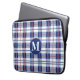 Proteja o seu laptop com esta tendência, xadrez, bolsa de laptop em vermelho, branco e azul. Esta é uma bolsa de laptop divertida para alguém que é patriótico, ama as cores vermelha, branca e azul ou padrões xadrezes. A letra do monograma é personalizável e faria um presente personalizado de excelente.