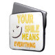 Brighten your workspace with this cheerful “Your Smile Means Everything” laptop sleeve!