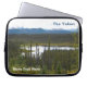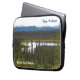 Uma paisagem típica vista no interior do Alasca, Canadá, Sibéria, etc. Esta foto foi tirada não muito longe de Beaver Creek, Território Yukon. O Spruce Negro (Picea mariana) assume frequentemente a forma de coluna quando cresce em terreno úmido; lagos e lagoas fazem a paisagem. No verão, os mosquitos são extremamente numerosos. Leitura personalizável de texto, "O Yukon" também é exibido. Há outro lugar para você personalizar adicionando mais texto. Terreno plano e pantanoso dominado por pântano preto. Nuvens se agarram a uma cadeia de montanhas distante. Uma terra bela e frágil.