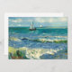 A paisagem nas proximidades de Les Saintes-Maries-de-la-Mer (1888) pelo artista poste-impressionista holandês Vincent Van Gogh. Arte original é uma pintura de capa de mar em óleo que mostra um barco em um oceano azul abstrato. Use as ferramentas de design para adicionar texto personalizado ou personalizar a imagem.
