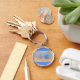 As conchas azuis e roxas na areia da praia são impressas em chaveiros personalizados. Uma borda azul está acima e abaixo da areia; a borda azul pode ser personalizada para qualquer cor de sua seleção. Há itens de casamento nesta loja. Obrigado por comprar em CherylsArt no Zazzle.