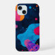 Um fundo abstrato dinâmico e moderno com um azul escuro, quase preto, fundo contrastado com formas vibrantes e fluidas em cor de laranja neon, rosa claro, azul elétrico e roxo. O design tem uma composição caótica, porém equilibrada, com espigões, pontos e grandes bolhas amorfas que parecem estar flutuando ou colidindo. A textura dá-lhe uma sensação de ressonância ou pintura, parecida com uma explosão cósmica colorida ou bolhas de tinta na água. Este é um wallpaper ousado e energético ideal para dispositivos digitais.