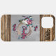 Personalize esta capas de iphone única de "Um tipo" de vaqueira. Apresenta um crânio de vaca aninhado em flores e penas cor-de-rosa e púrpura, com corda no fundo de couro prateado, bordas de madeira estressadas castanhas e a citação... "Sou o País Y'all"! Design de Arte Original do Artista Kerry Miller.
