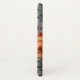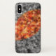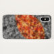 Fotografia de outono, colorida seletivamente, de folhas mirtilosas caídas de crepe, com forma de folha moldada a ouro, vermelha, laranja e amarela, contra fundo preto e branco.