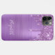 Capa de telefone de monograma elegante e giro, com brilho púrpura e falso, mergulhando sobre um fundo de película metálica falso púrpura. Adicione seu nome em um script na moda white.