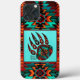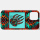 Esta é uma capas de iphone de Células de Urso Tribal "Um dos Tipos"! Apresenta uma Pata Nativa Americana Tribal Bear, que representa proteção e boa saúde, num fundo turquesa e cercada por uma Turquesa, Laranja e Borda Negra! Design de Arte Gráfica Original do Artista Kerry Miller.