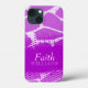 Capas de iphone com padrão de animal brilhante em matizes roxas arrojadas. Personalize este item com o nome do seu cheio. Este exemplo diz atualmente: Faith Williams. Este padrão original de Sarah Trett, é baseado no padrão encontrado em uma girafa com um ponto moiré de meio tom ganha cobertura padrão.