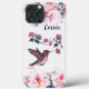 Personalize esta capas de iphone única de "um tipo" de beija-flor! Ele apresenta um néctar de beija-flor Adorável de Flores Grandes Rosa e Púrpura...em um belo fundo branco, rosa e púrpura floreal! Pintura de arte original do artista Kerry Miller. Aproveite!
