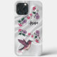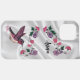 Personalize esta capas de iphone única de "um tipo" de beija-flor! Ele apresenta um néctar Adorável de Hummingbird saltando de grandes flores roxas e rosa lindas em um fundo de seda branca! Pintura de arte original do artista Kerry Miller.