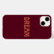 Esta capas de iphone apresenta um fundo burgundy quente com fonte laranja divertida. Sonhar é eterno. Este é o seu lembrete!