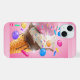 Esta capas de iphone mostra as cores e as texturas do sorvete e as aspersores ao redor do cone criando uma experiência visual animada e envolvente.