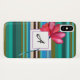 Caso de monograma elegante com fundo e flor de listras.