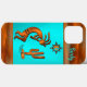 Personalize esta única capas de iphone de células do sudoeste de Kokopelli! Ele apresenta um Cobre no Sudoeste de Kokopelli tocando flauta e dançando em volta de um cacto debaixo do Sol...em um fundo de turquesa... cercado por fronteiras de cobre!! Design De Arte Original Pelo Artista Kerry Miller.