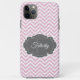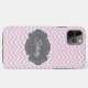 Proteja seu iPhone com uma capas de iphone personalizada Chevron rosa. O design de caixa apresenta um fundo de fevron cor-de-rosa e uma etiqueta de cinza ornamentado para personalizar com seu nome e monograma. Itens adicionais disponíveis com este design também. Entre em contato comigo diretamente para obter assistência com a personalização.