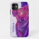 Esta capa de telefone personalizable caracteriza um urso de koala em máscaras brilhantes do rosa e do roxo. Deixe-a lisa ou adicione-o seu nome em sua escolha do estilo de pia batismal e colora-o para essa de uma capa de telefone amável.