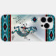 Esta é uma única capas de iphone de células do sudoeste de Kokopelli! Ele apresenta um Turquesa Kokopelli tocando flauta com notas musicais e dançando sob o sol num fundo de turquesa e branco... cercado por uma borda sudoeste em Turquesa, Branco e Ferrugem! Design De Arte Original Pelo Artista Kerry Miller.