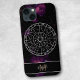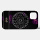 Uma capas de iphone zodíaca elegante e moderna, com um calendário astrológico circular com fundo espacial profundo e uma bela nebulosa roxa. O círculo do zodiac mostra todos os 12 símbolos de sinais de estrelas e constelações. Um presente temático de astrologia que é fácil de personalizar, com um espaço para um monograma e nome para adicionar esse toque único.