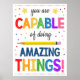 VOCÊ É CAPAZ DE FAZER COISAS INCRÍVEIS! Um poster excelente para ficar em uma sala de aula, escritório de orientação, escritório de terapeutas infantis, escritório de assistentes sociais ou escritório principal para lembrar às crianças que elas são capazes de fazer coisas incríveis! Um poster muito fofo para decorar a sala de aula ou o escritório! Possui cores brilhantes, divertidas e alegres.