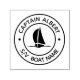 Capitão com o seu nome de selo de autocolante. Emblema redondo clássico com o seu nome e campos de nome de barco em texto de bloco e com barco a vela no centro.