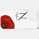 Um visual moderno e chic com um solteiro vermelho. Em um fundo branco com texto preto. Você vai personalizar com seu monograma de letra solteiro inicial. Use todos os bonés para isso. Seu primeiro nome estará em uma fonte na moda cursiva.